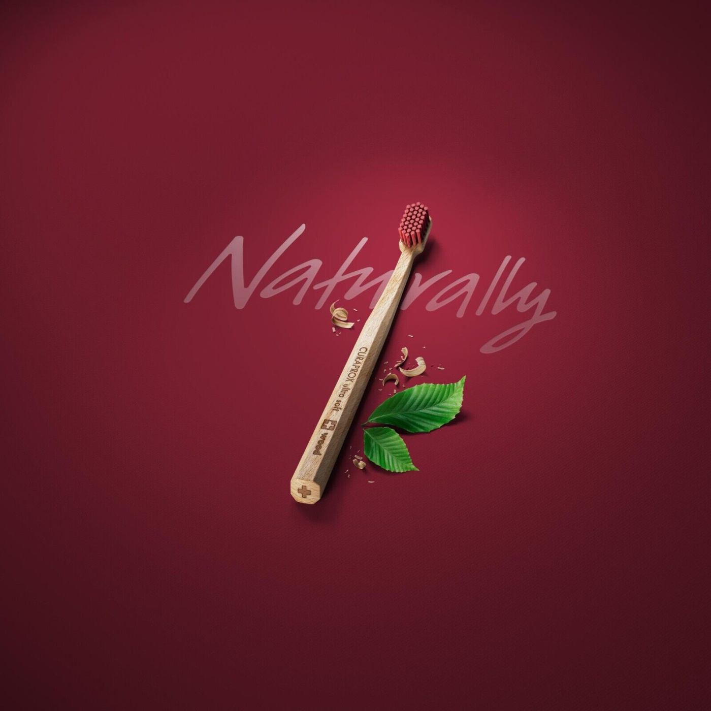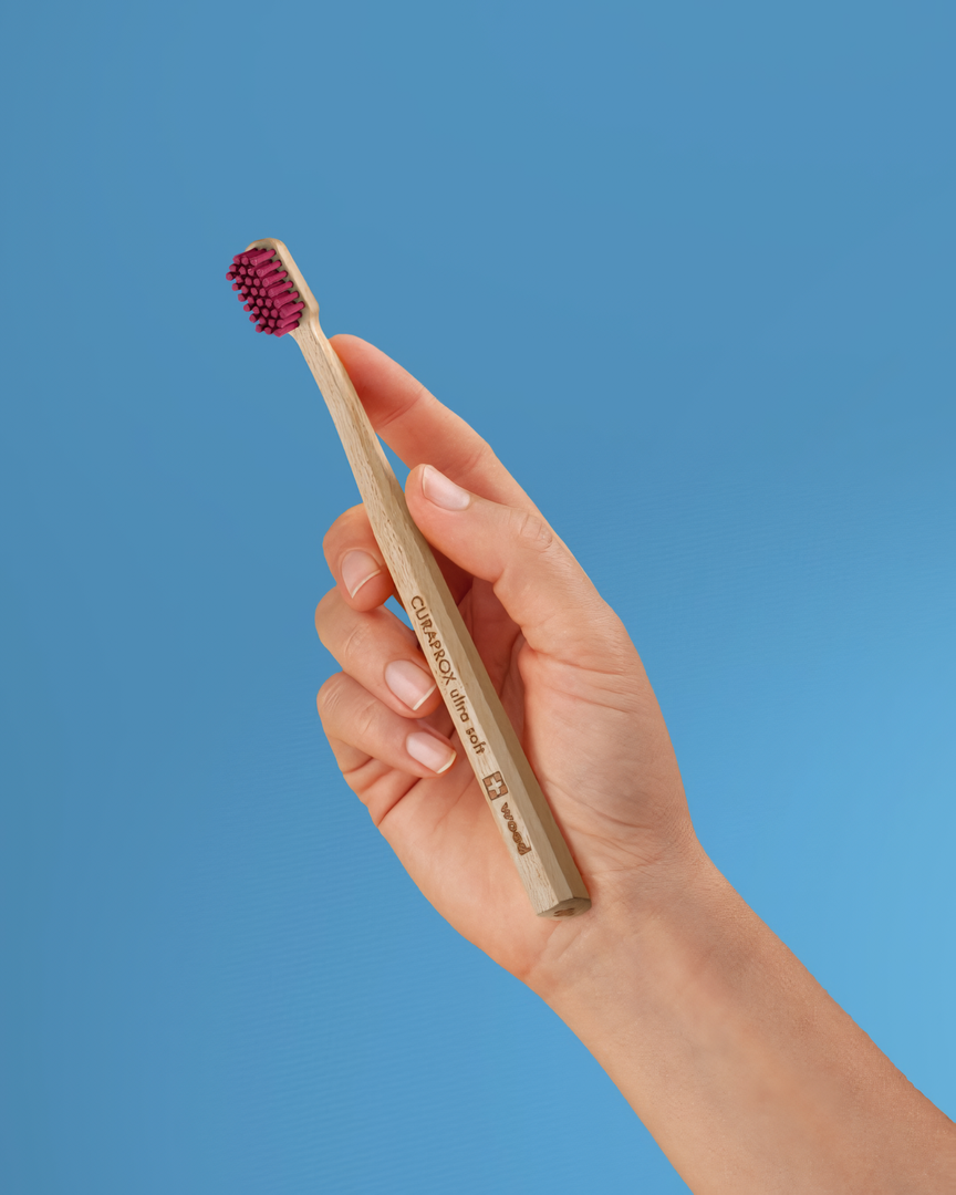 —Зубная щетка Curaprox CS Eco Wood CS4440, малиновая