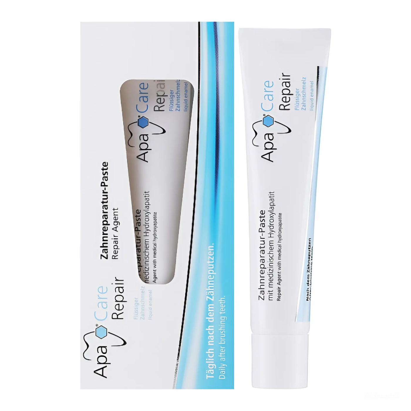 Гель ApaCare&Repair содержит очень высокую концентрацию медицинского гидроксилапатита - "жидкой эмали",которая покрывает зубы защитным слоем, делая их блестящими, защищая от бактерий и налёта. Гель снижает чувствительность зубов, предотвращает кариес и деминерализацию зубов.