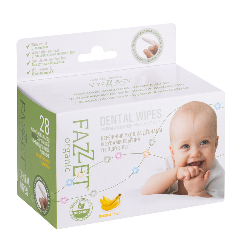 Салфетки для полости рта Fazzet с ксилитом предназначены для ежедневной гигиены детей от 0 до 3 лет. Эффективно удаляют налет после приема пищи, предотвращая воспаление десен, снимают зуд и раздражение при прорезывании зубов.